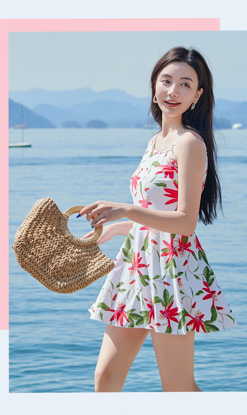 • 品名:日系小清新高腰顯瘦連身裙泳衣