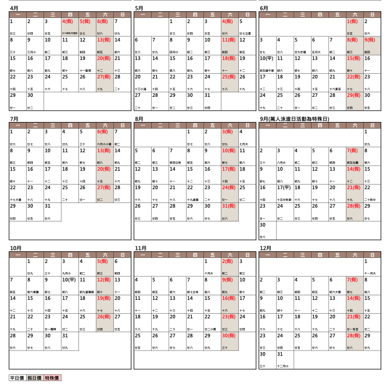 日月潭瑞居渡假飯店 2024平假日行事曆