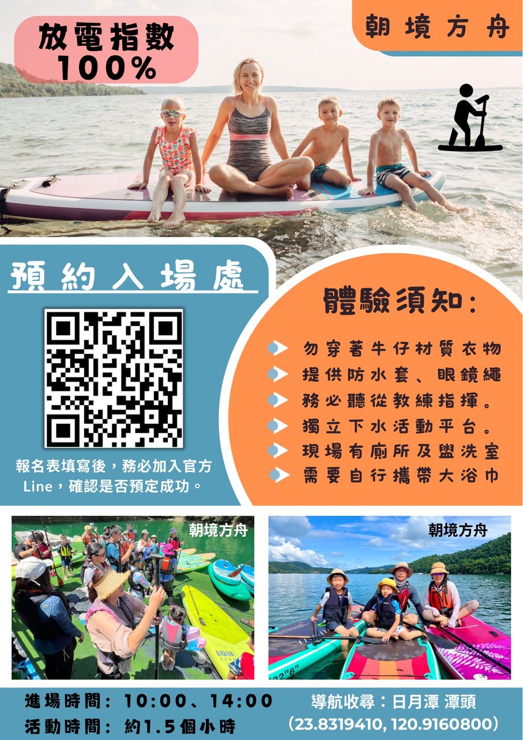 步驟三、完成填寫後,加入朝境方舟SUP體驗官方line帳號(點我加入),確認預訂狀況(請主動告知是「媽咪愛瑞居專案」),方可算完成預約!
