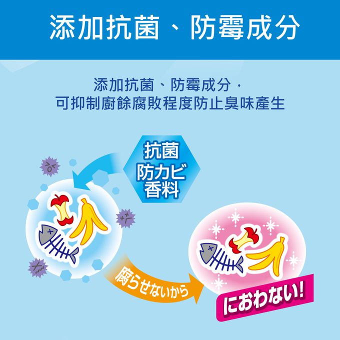 ✓抗菌、防霉成分抑制厨餘腐敗程度防止味道產生。