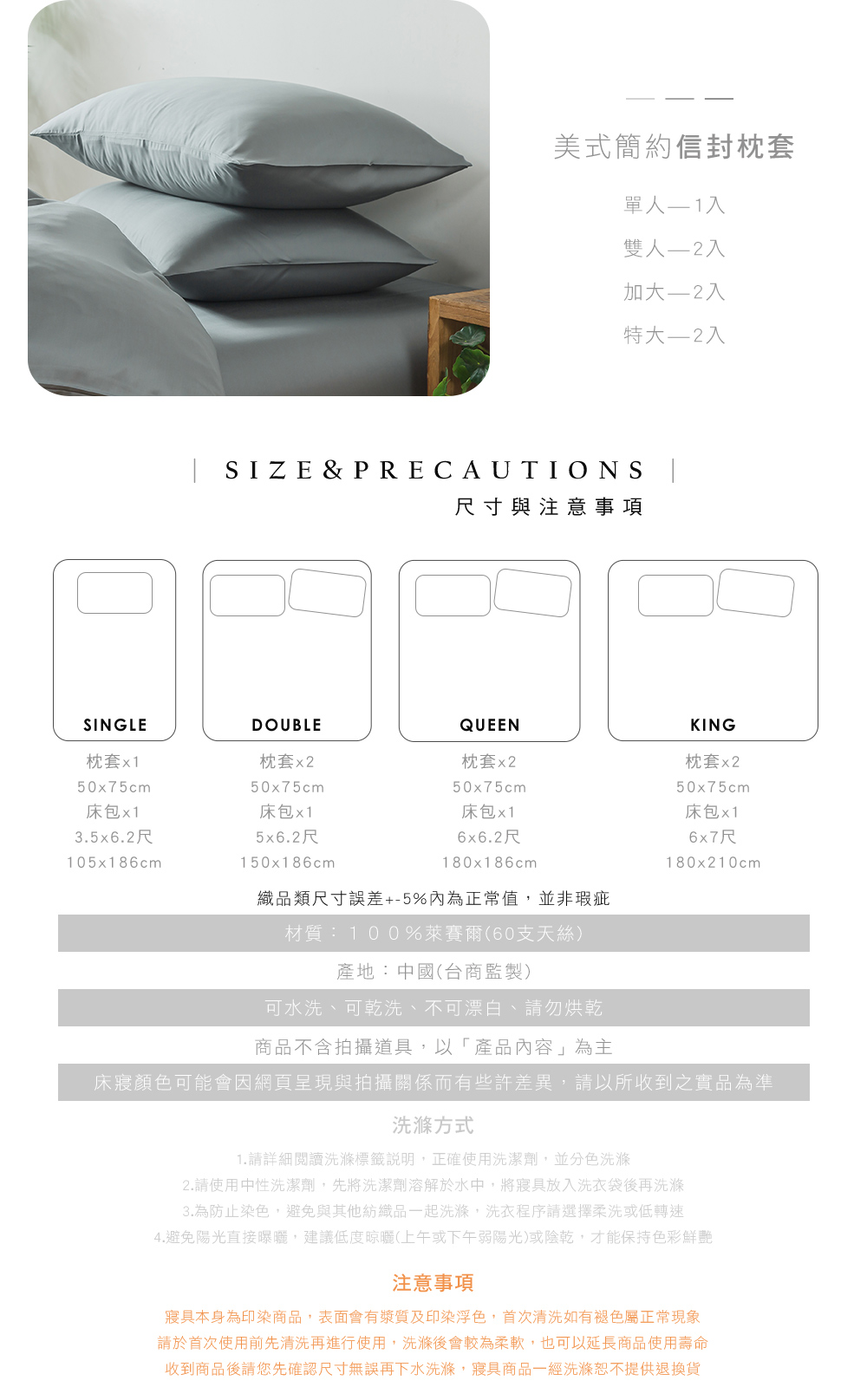 • 材質:100%萊賽爾(60支天絲)