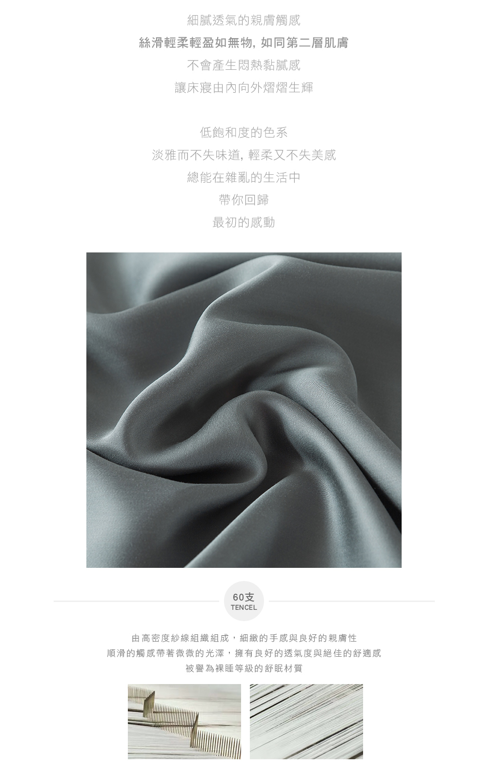 ◆產品內容:◎內容:雙人60支天絲被套(此賣場僅販售被套,不含床包枕套)◎材質:100%萊賽爾(60支天絲)◎尺寸:6x7尺/180x210cm(+-5%)◎產地:中國(台商監製)◆注意事項:◎清潔保養方式:可水洗、可乾洗、不可漂白、不可烘乾◎建議清洗時,先將洗劑溶解於水中,再將床寢放入大型洗衣袋後再清洗◎本商品不含拍攝道具,以「產品內容」為主◆產品顏色可能會因網頁呈現與拍攝關係而有些許差異,請以所收到之實品為準。