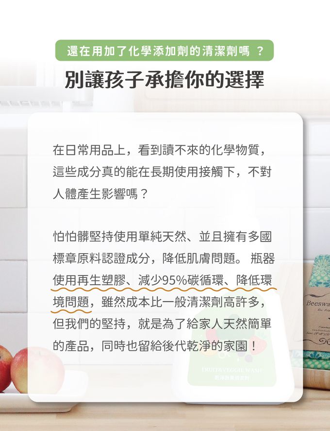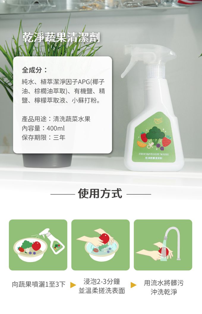 主要成份:純水、植萃潔淨因子APG(椰子油,棕梠油萃取)、有機鹽、精鹽、檸檬萃取液、食品級蘇打粉。