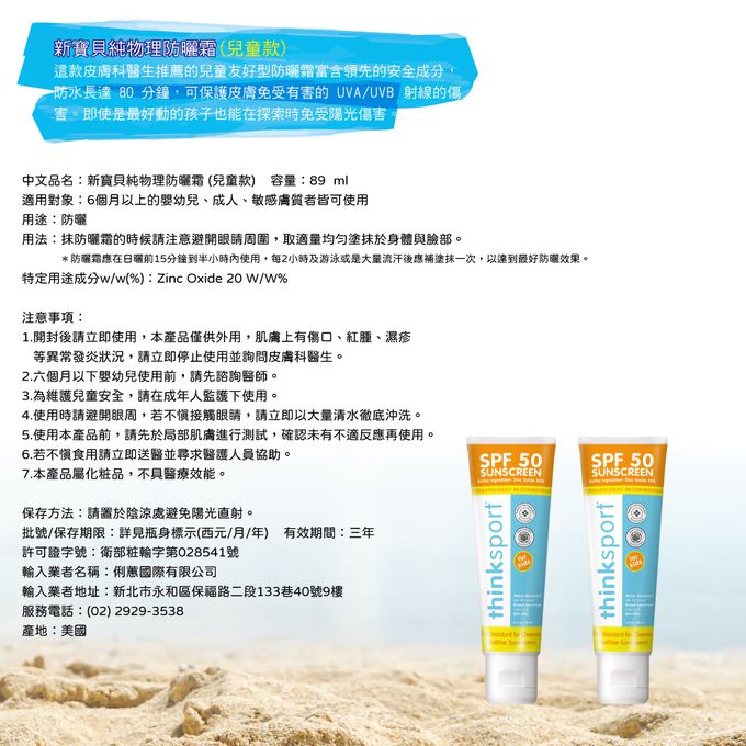 品名:thinkbaby 新寶貝SPF50純物理防曬霜 (兒童款/thinksport)