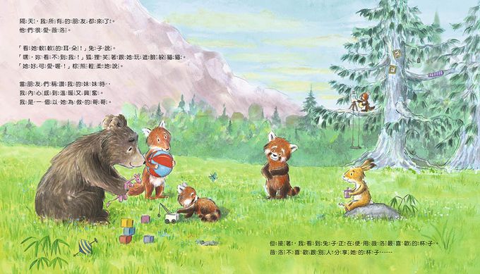 讀者可以在本書中看到用語言來表達情感的效果,也看到了裡頭的小妹妹的所有感受都得到了驗證。故事裡可愛的小貓熊非常真實地展示了兄弟姐妹之間的情感聯繫,以及我們在表達情感時偶爾會遇到的困難,而替我們的感受「命名」,有助於我們理解和處理所經歷的事情。這是兒童情緒繪本類的一大傑出作品!──amazon.com/讀者評論