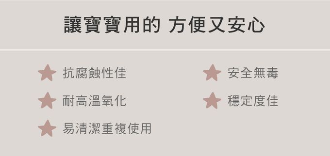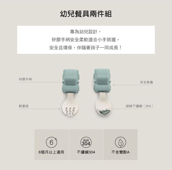 ✔通過德國LFGB食品容器驗證合格✔不含 BPA ✔餐具由絕緣不鏽鋼 (304)製成✔矽膠手柄安全且適合小手抓握,讓寶寶可以輕鬆入口✔可練習寶寶獨立用餐✔吸睛可愛的造型,讓寶寶能開心享用餐點✔適用於洗碗機。不適合微波爐