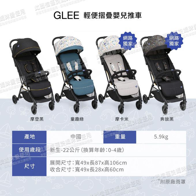 • 品名:Glee輕便摺疊嬰兒推車繽紛版