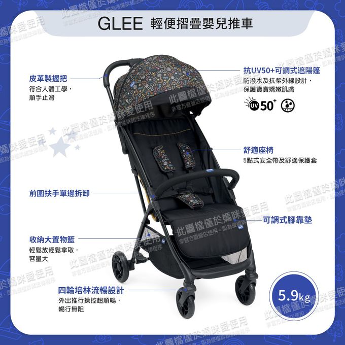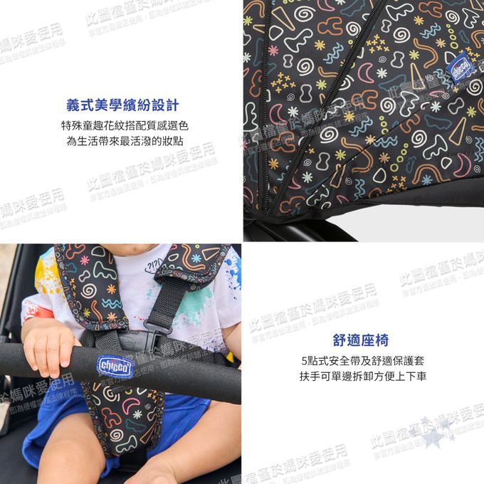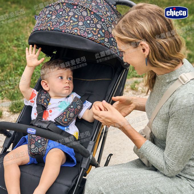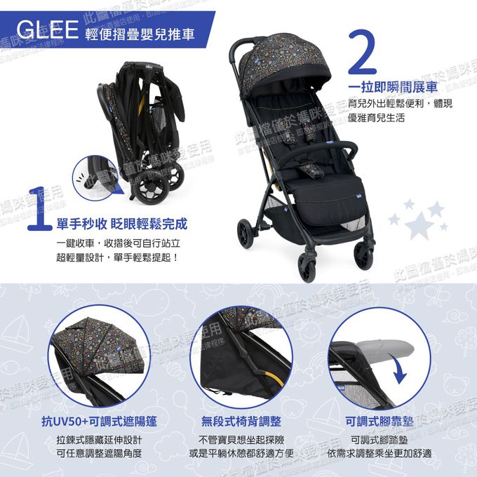 義大利 chicco - Glee輕便摺疊嬰兒推車繽紛版-奔放黑
