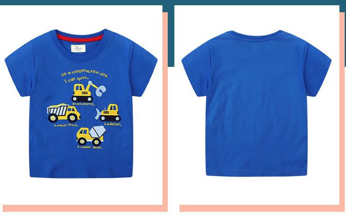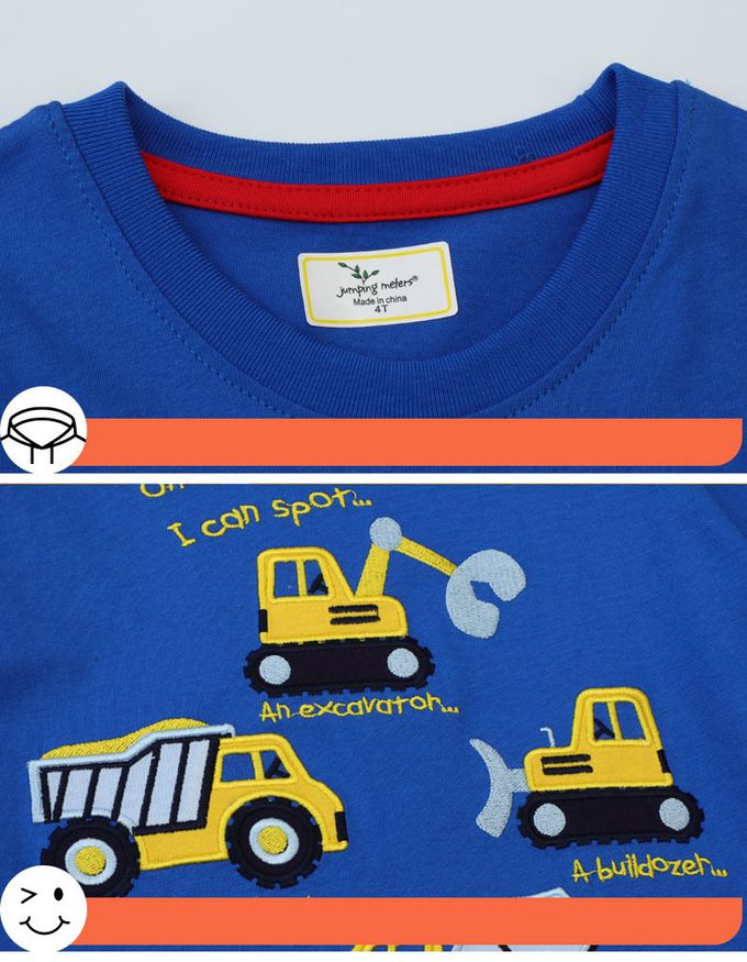 Jumping meters - 棉質圓領短袖上衣-滿滿工程車-灰色
