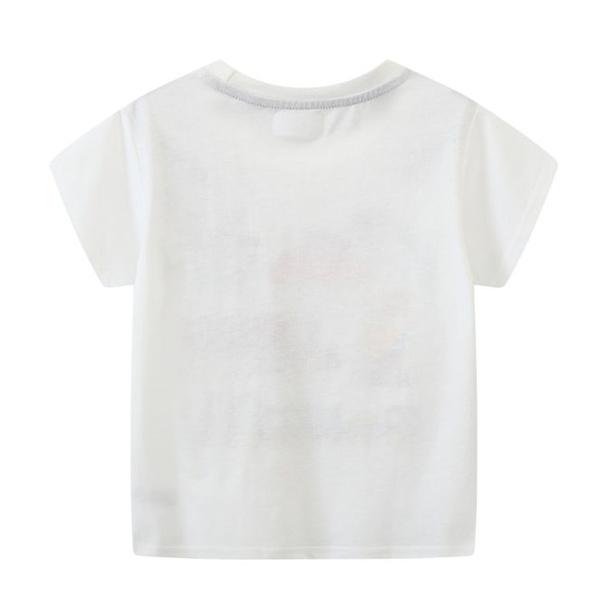 Jumping meters - 棉質圓領短袖上衣-恐龍工程車-白色