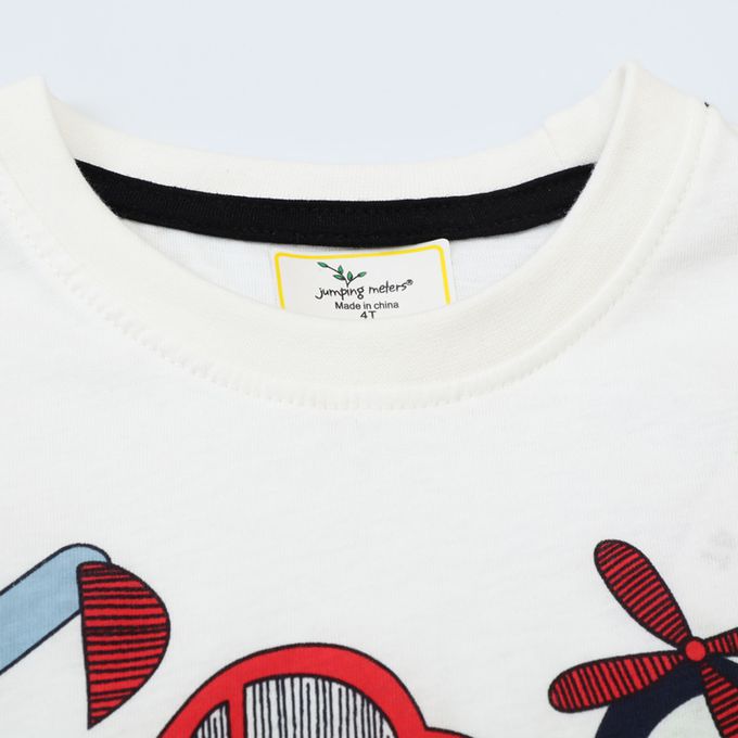 Jumping meters - 棉質圓領短袖上衣-工程車日常-白色