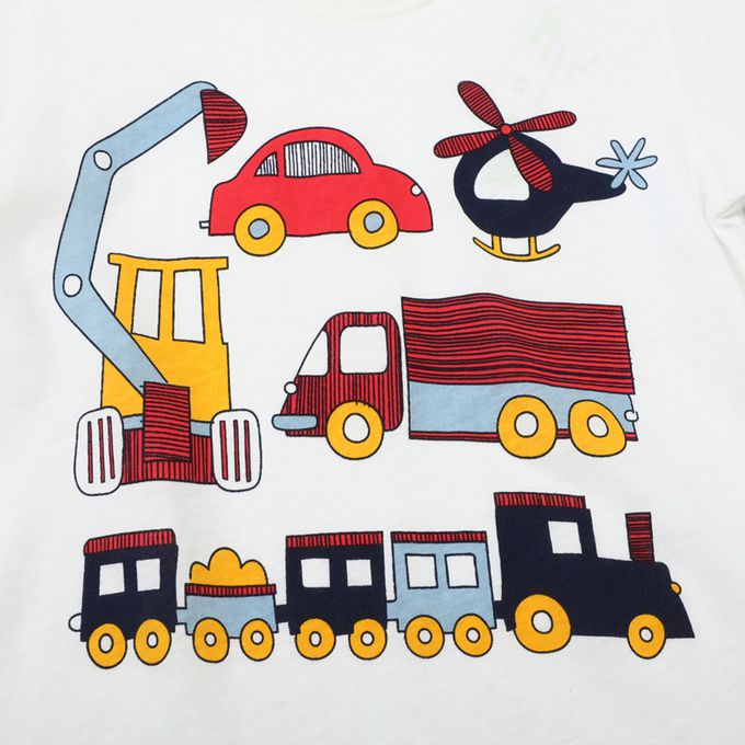 棉質圓領短袖上衣-交通工具-白色