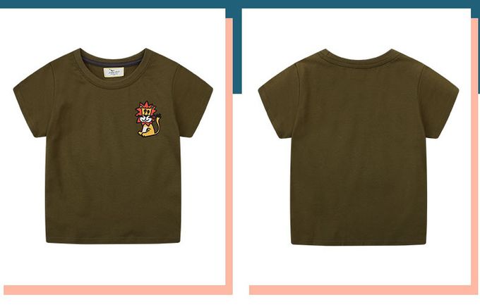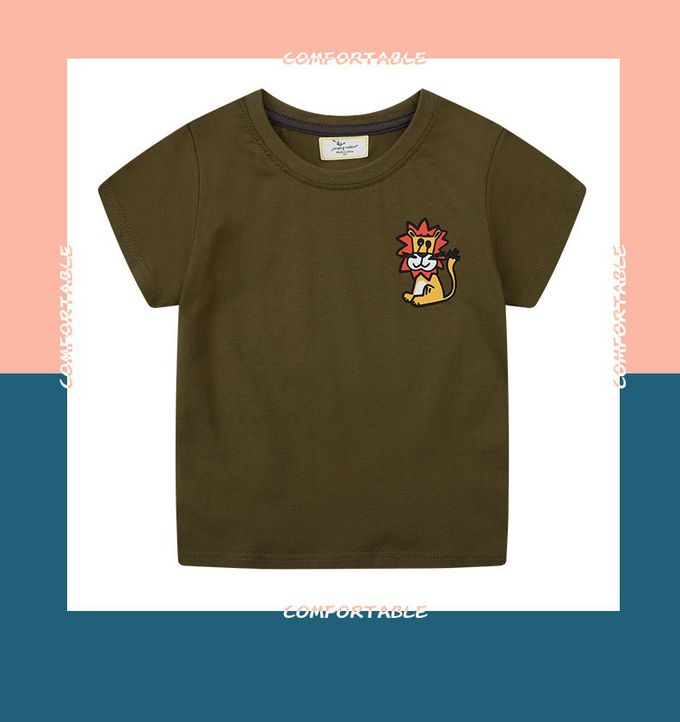 Jumping meters - 棉質圓領短袖上衣-恐龍工程車-白色