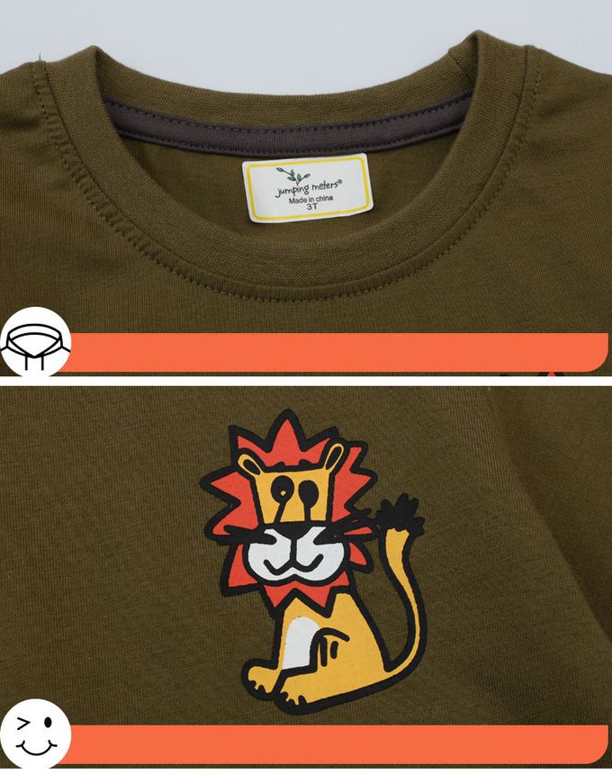 Jumping meters - 棉質圓領短袖上衣-滿滿工程車-灰色