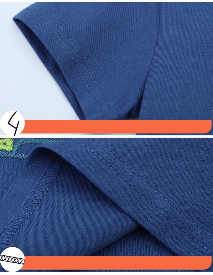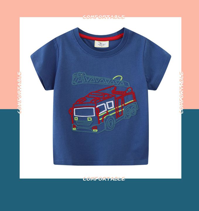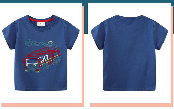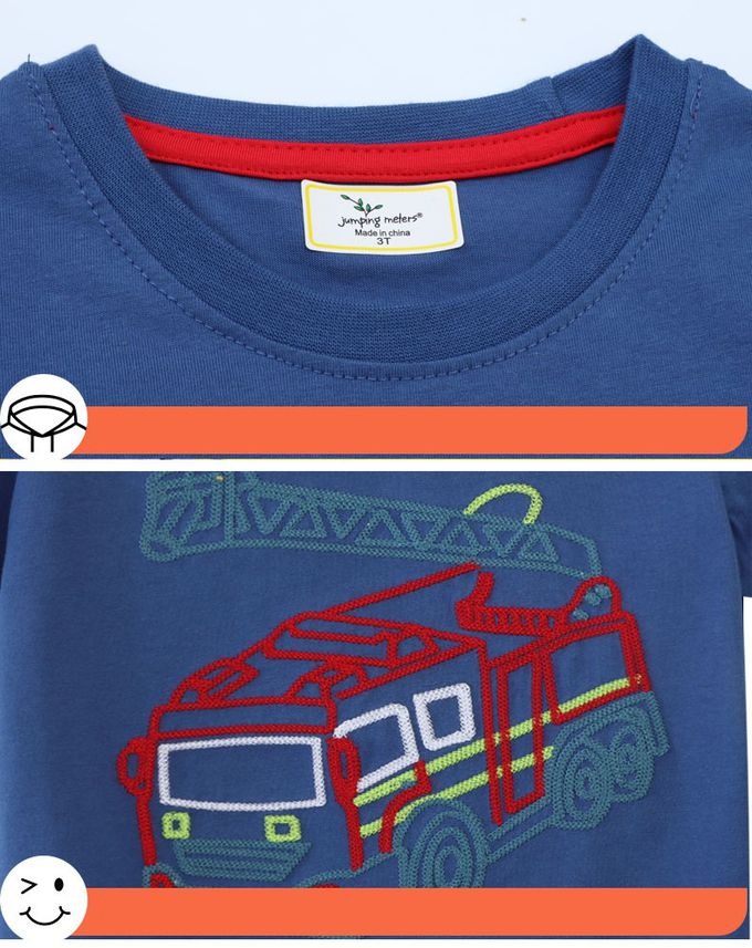 棉質圓領短袖上衣-消防車貼布繡-藍色