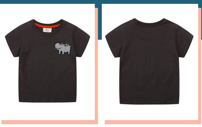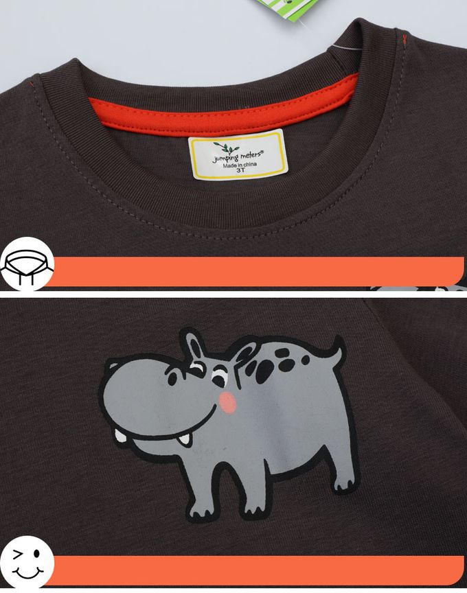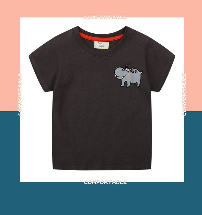 棉質圓領短袖上衣-童趣河馬-深灰黑