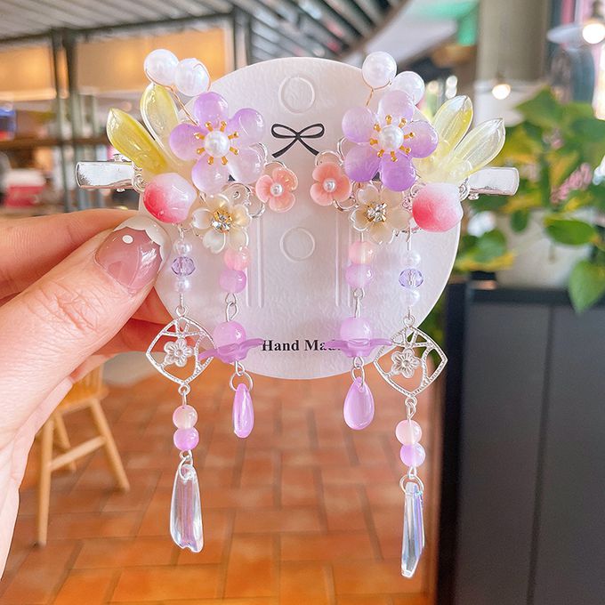 古裝漢服秋水伊人花朵蜜桃吊墜髮飾對夾-仙氣紫色