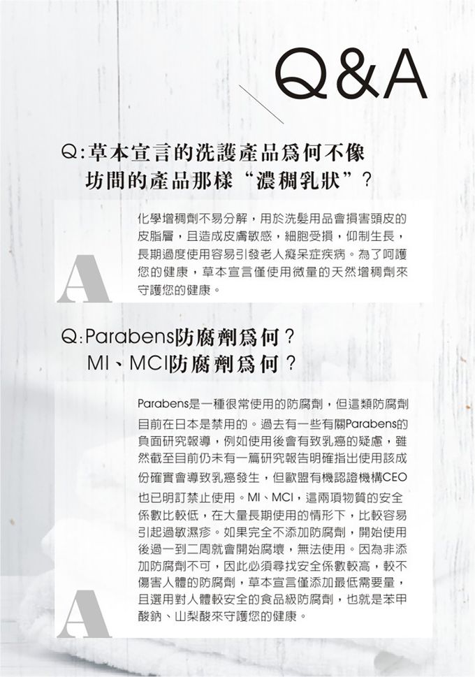 成分:主要成分:烷基葡萄糖苷、胺基酸、烷基甜菜鹼、月桂醇、薄荷腦、羊毛脂、乳酸、山梨酸鉀、艾草精油、抹草精油、純水