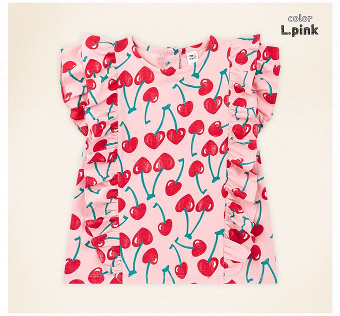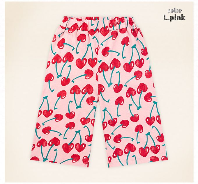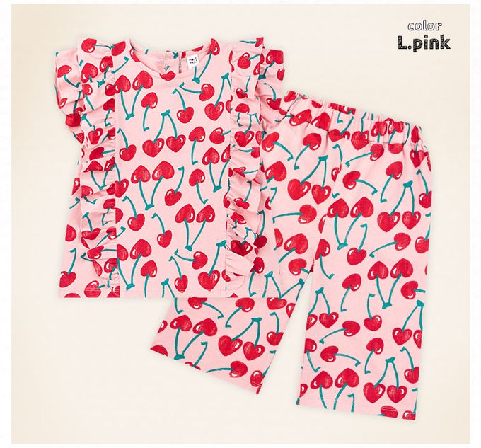 • 品名:愛心櫻桃印花袖七分褲套裝