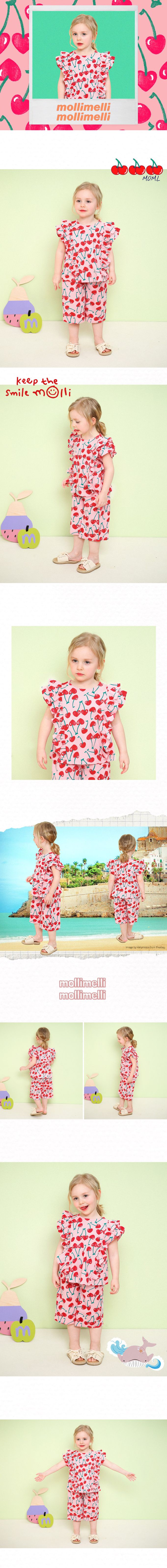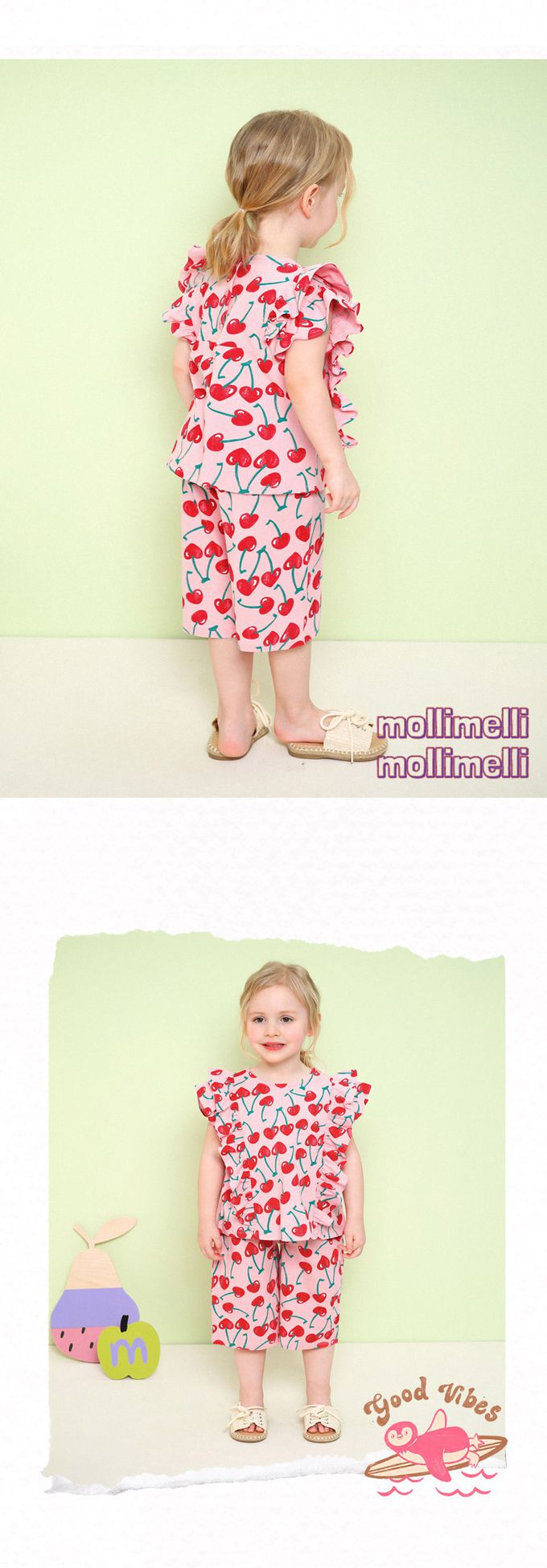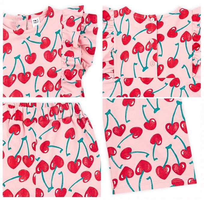 韓國 mollimelli - 愛心櫻桃印花袖七分褲套裝-粉紅