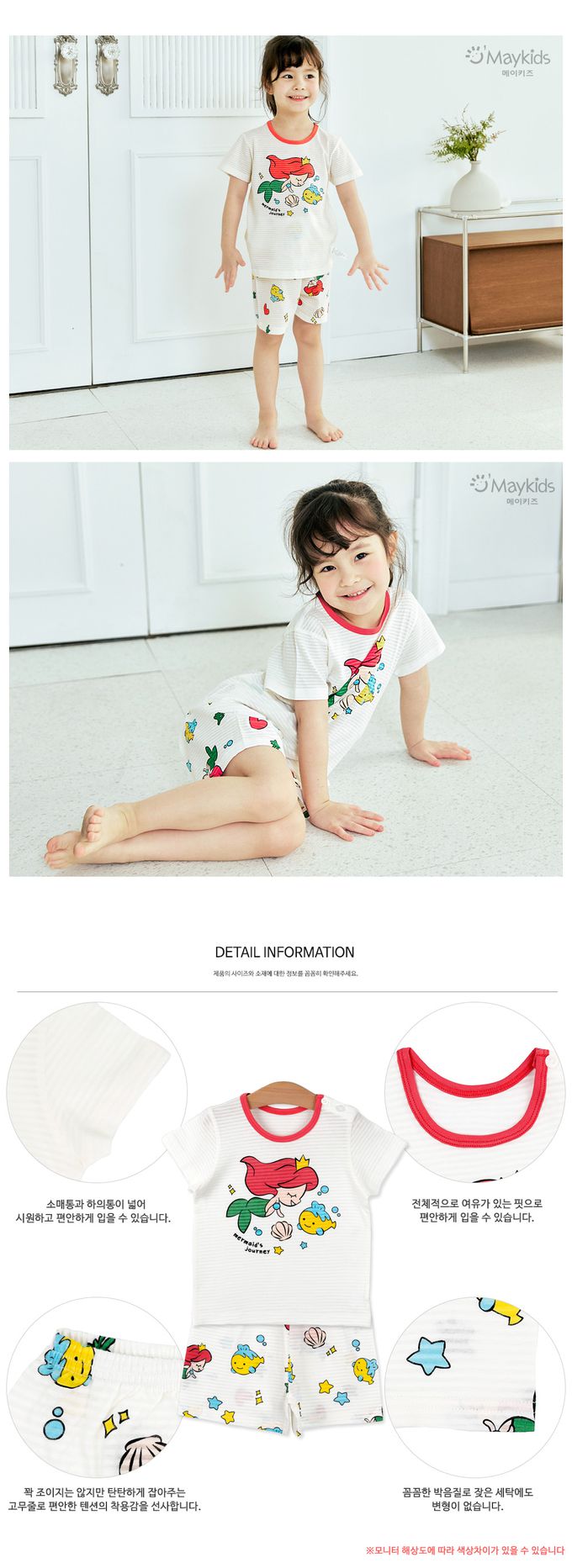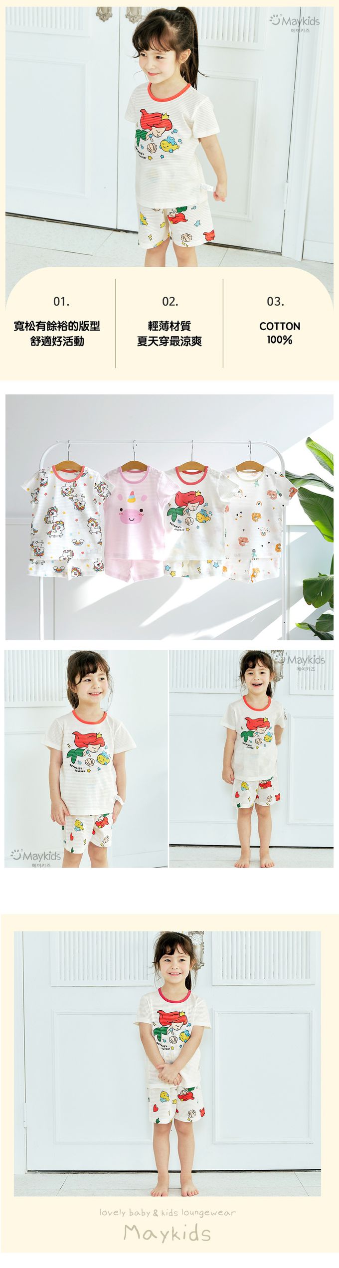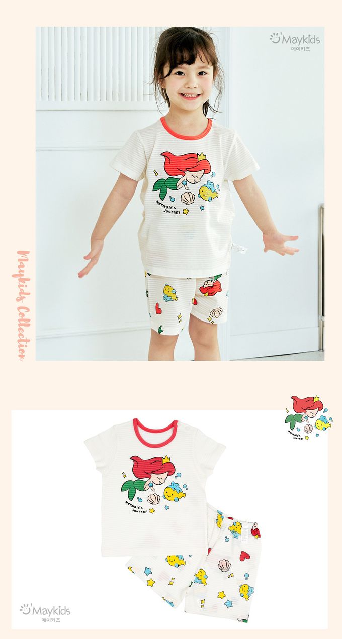 韓國 Maykids - 透氣條紋提花棉短袖家居服-卡通人魚公主