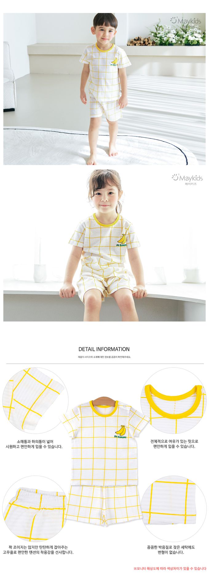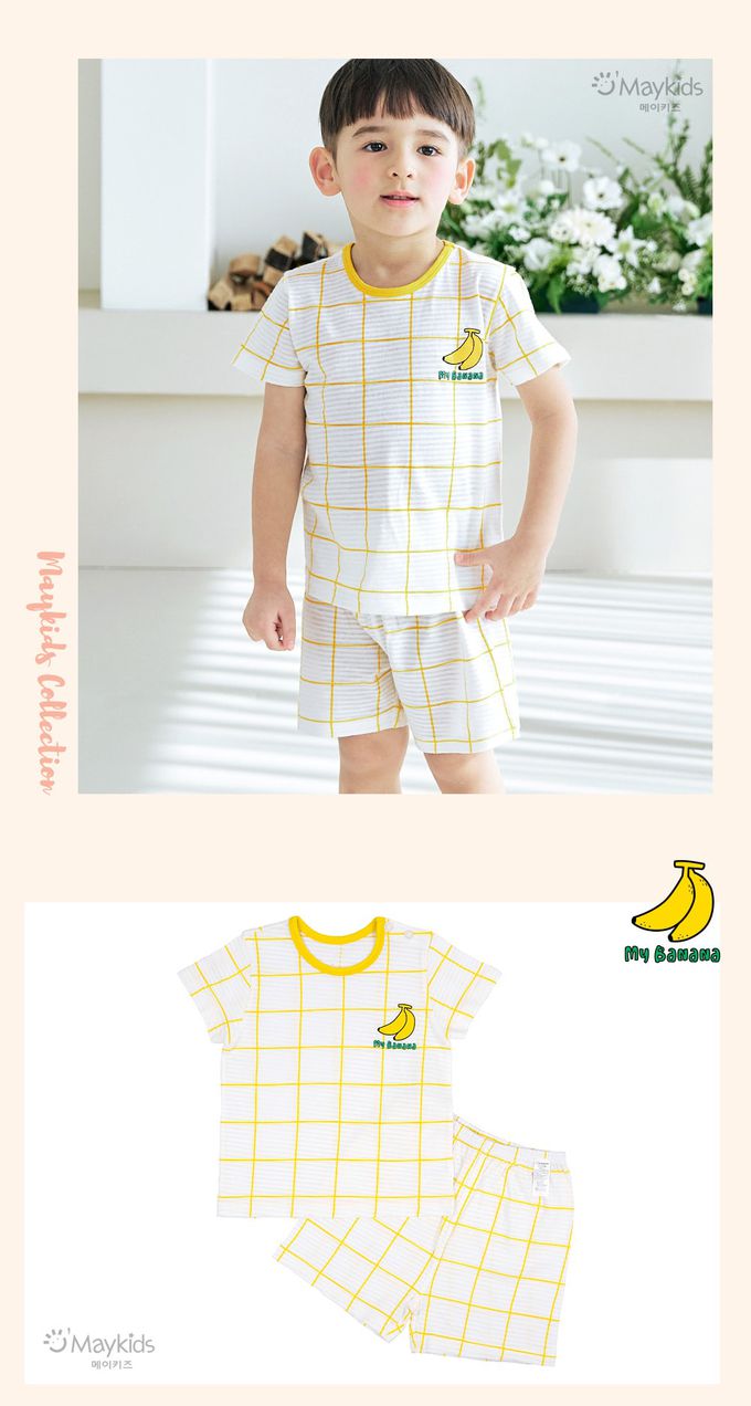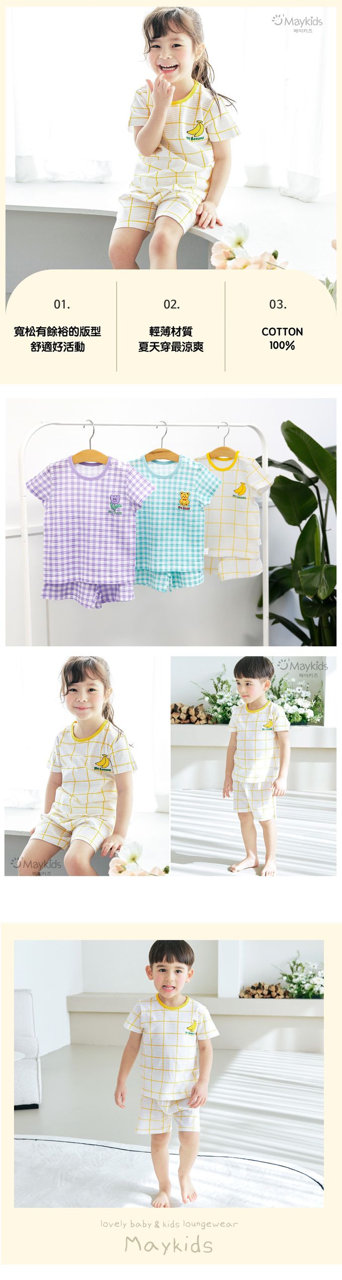 韓國 Maykids - 透氣條紋提花棉短袖家居服-香蕉格紋