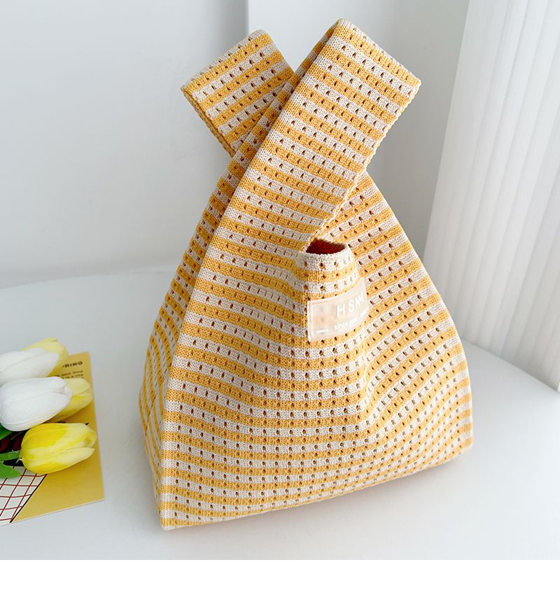 簍空條紋針織手拿包/手提包-橘黃色 (20x35cm)
