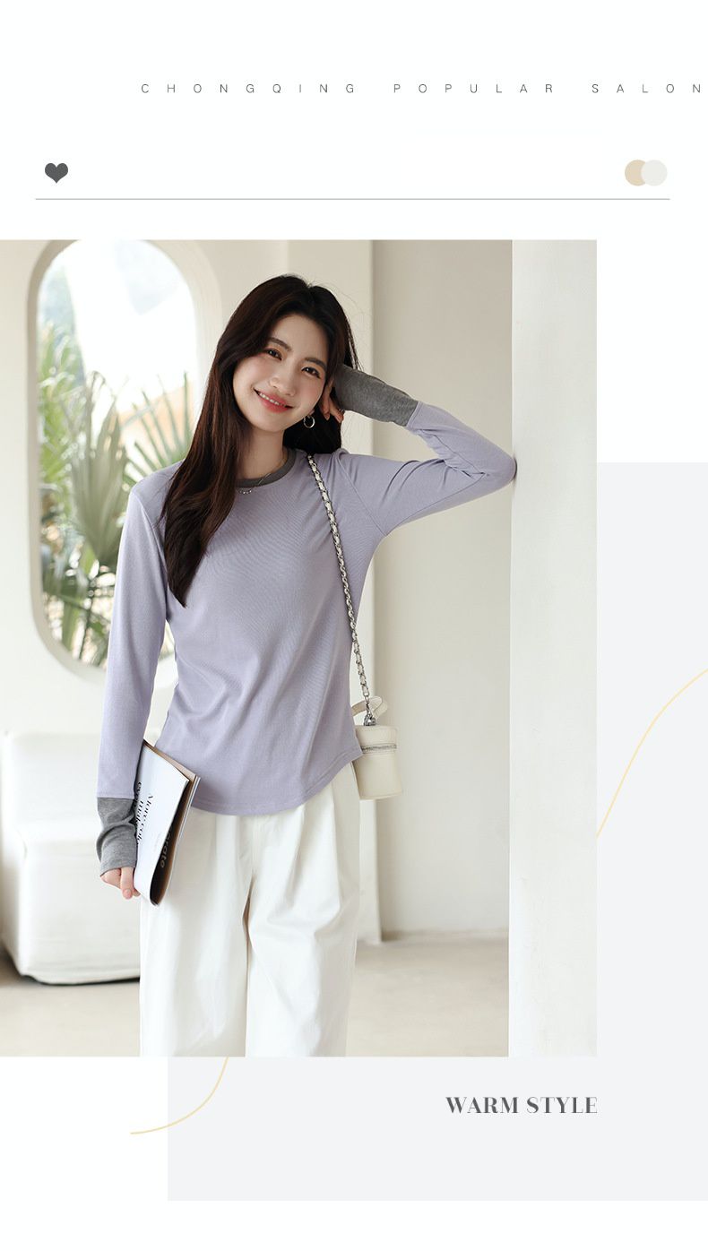 氣質圓領百搭撞色上衣-紫色 (F)