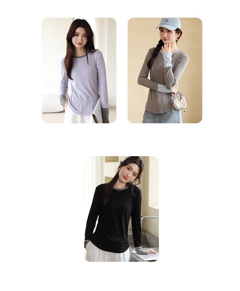 品名:氣質圓領百搭撞色上衣
