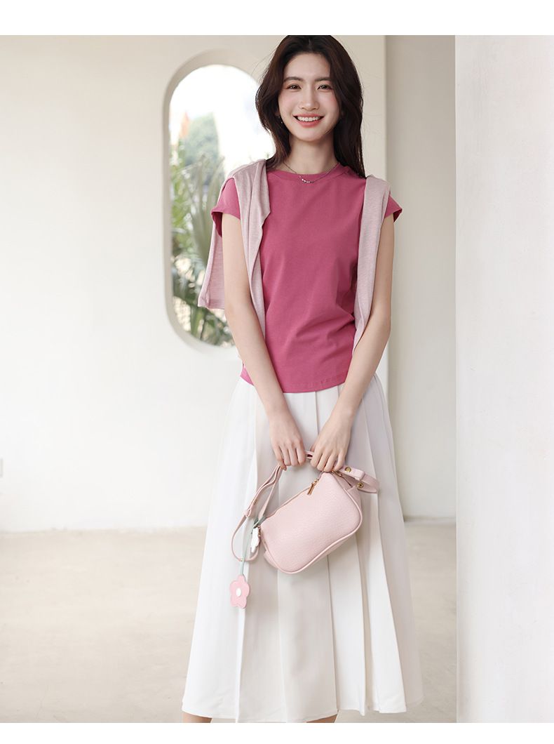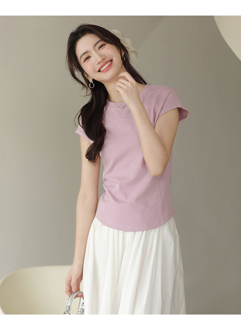 KPUWARM - 圓領修身連袖瘦瘦上衣-甜粉