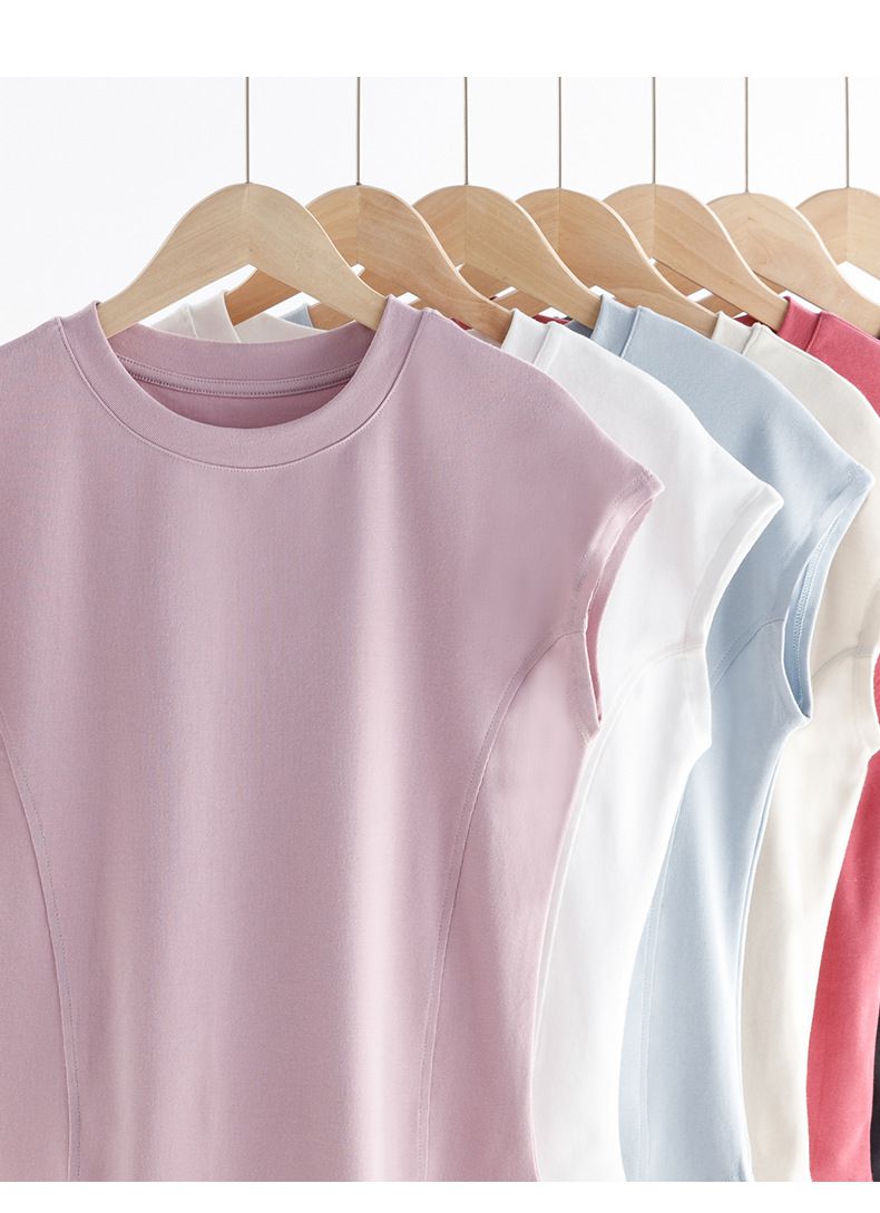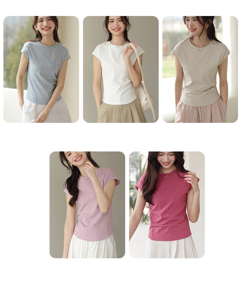 有點厚度的棉T,觸感不錯,法式袖對手臂有稍微修飾效果。價格便宜。