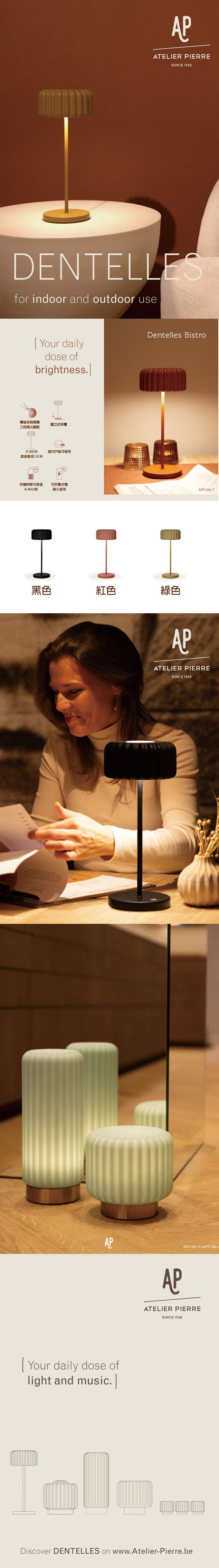 Atelier Pierre的Dentelles 燈具由兩位比利時設計師 Paulien 和 Kaat 設計。這些燈是無線的,室內外均可使用!