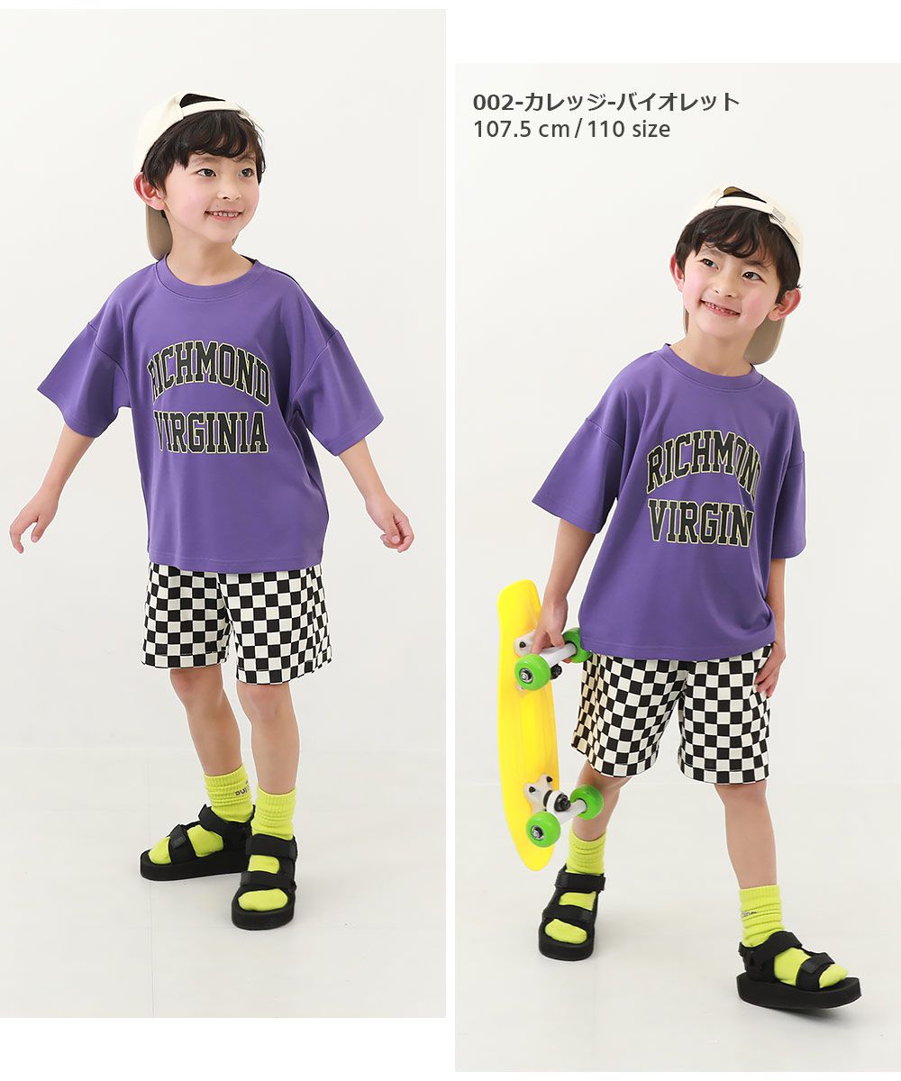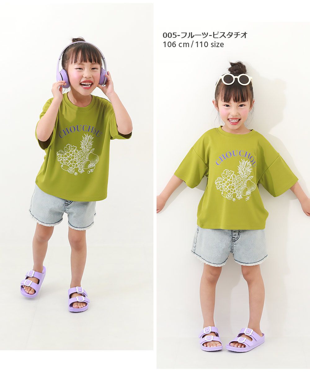 日本 devirock - 背後標語印花落肩短袖上衣-藍綠底黃字