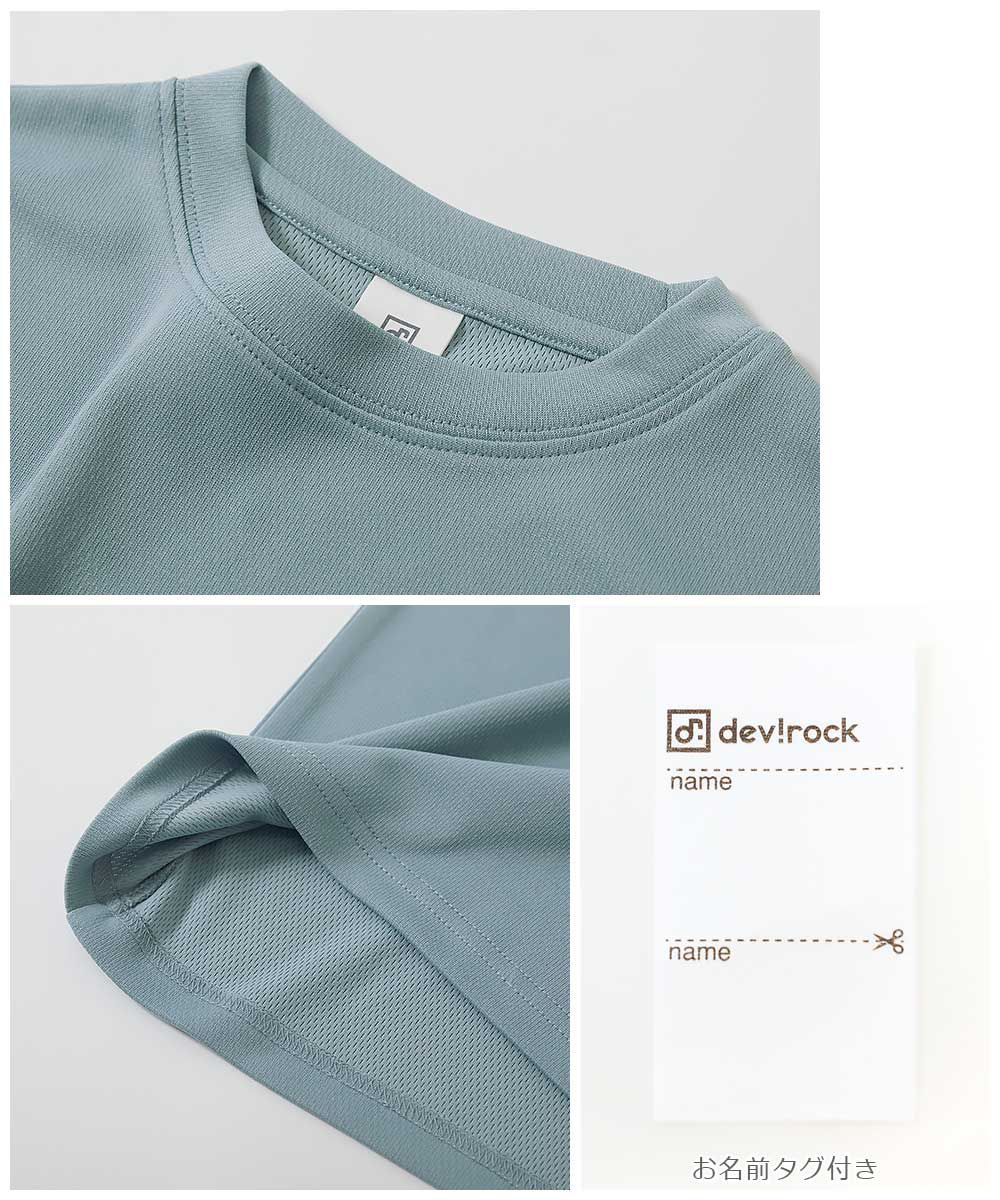 日本 devirock - 涼爽速乾網眼印花短袖上衣-背後標語-灰藍
