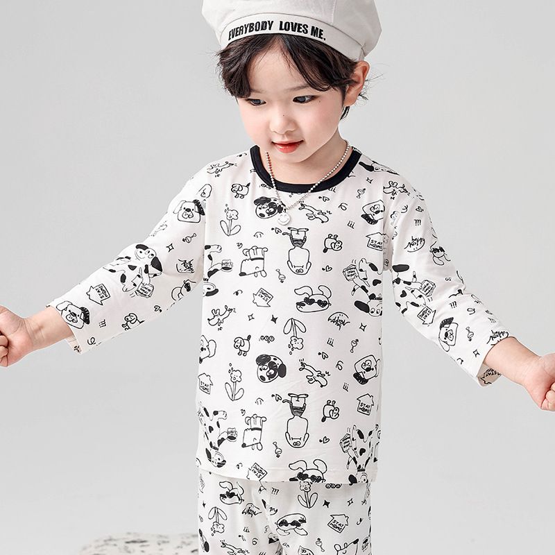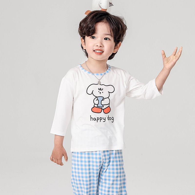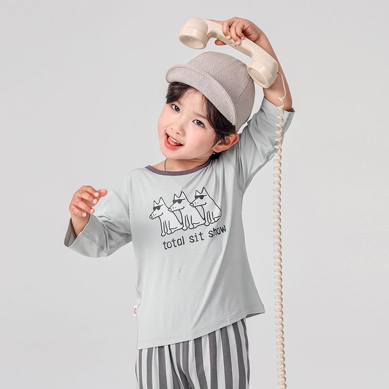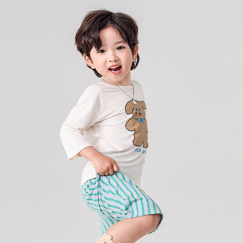50s雅賽爾設計款透氣親膚七分袖家居服套裝/空調服-墨鏡小狗