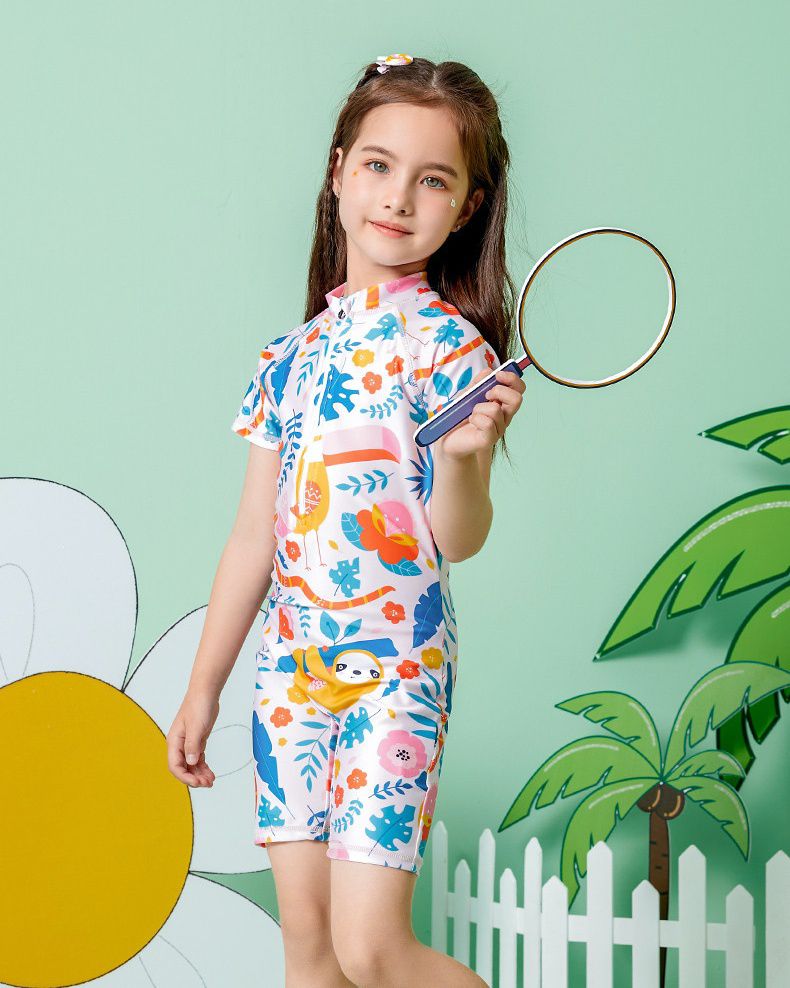 361° - 兒童卡通圖短袖連身泳衣-童趣印花
