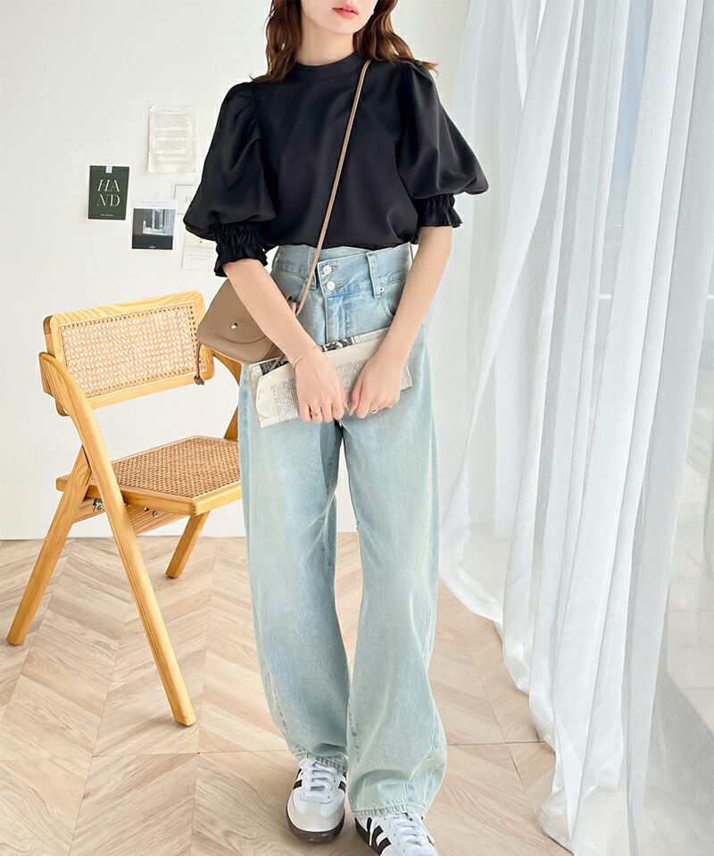 以棉T來說,是難得的不會過於軟趴趴的版型,微立領的領口也能修飾脖頸線條。