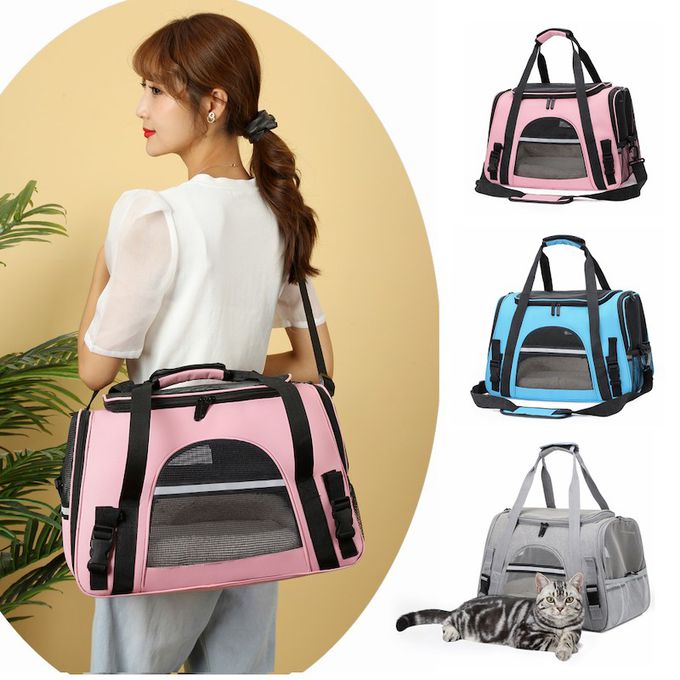 透氣網布寵物包 便攜外出手提單肩斜跨寵物箱 可折疊透氣透明貓狗包袋 寵物旅行包 寵物外出包
