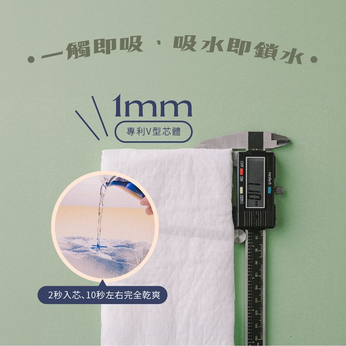 . 專利V型芯體|吸水即鎖水,2秒入芯10秒乾爽