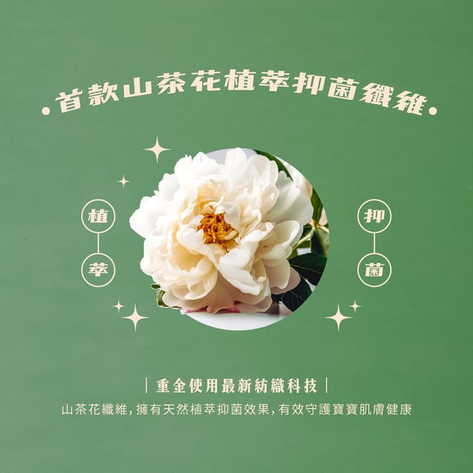 首創山茶花植萃抑菌纖維,大幅降低尿布疹風險