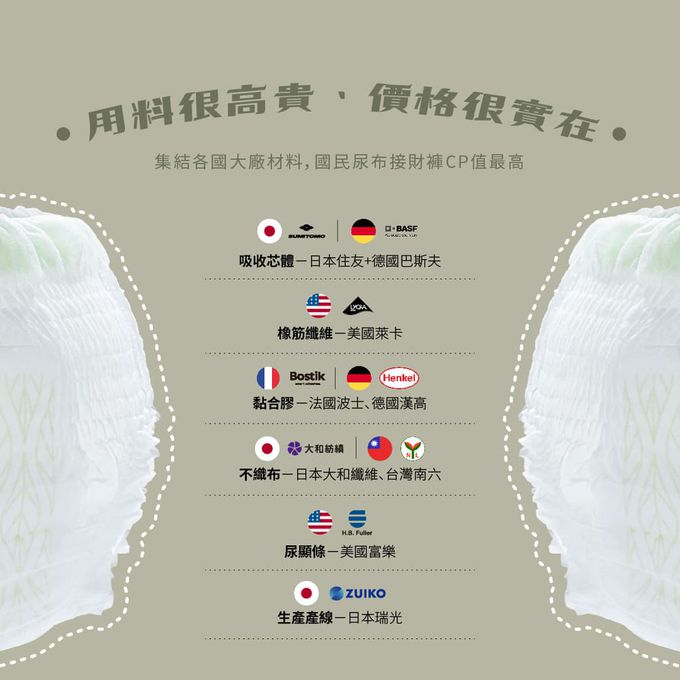 - 材質/成分:棉柔不織布、親水不織布、複合式吸收分子、透氣膜、黏合材料、彈力材質