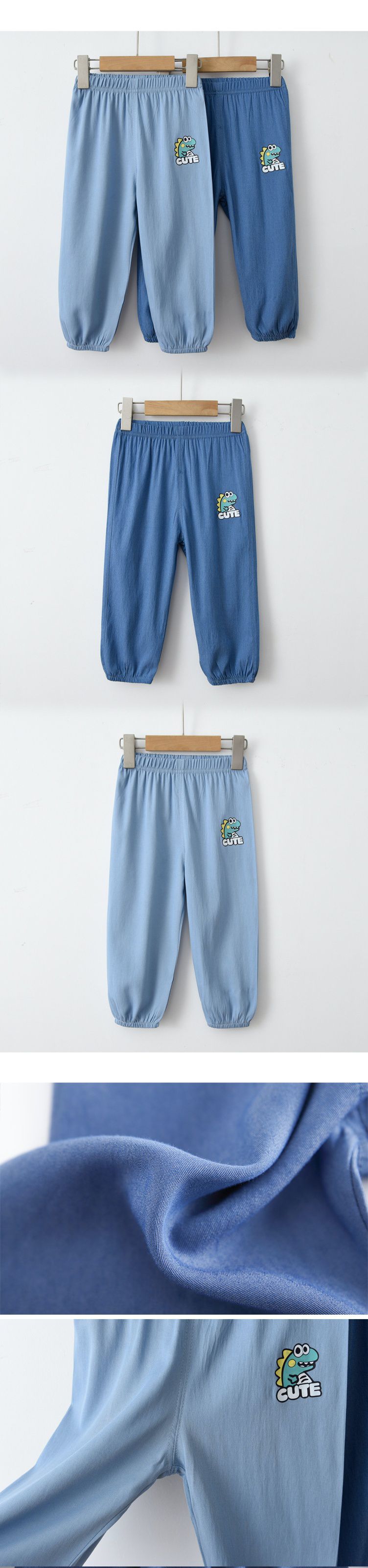 冰絲牛仔九分防蚊褲/空調褲-可愛恐龍-淺藍色