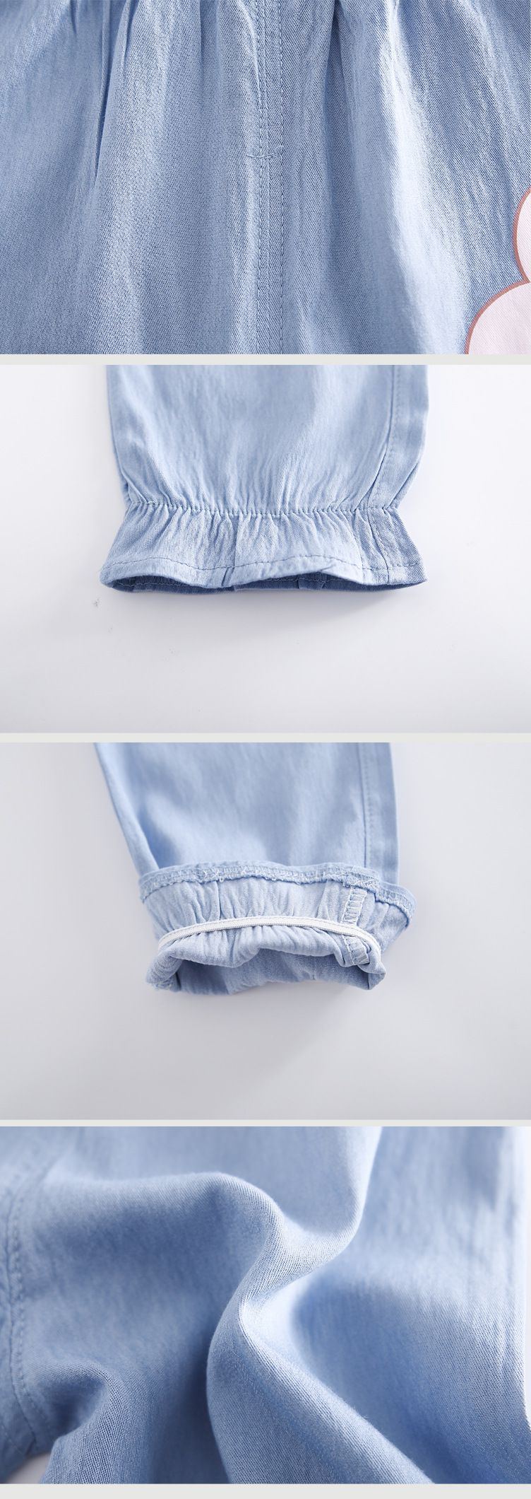 NC - 冰絲牛仔九分防蚊褲/空調褲-小草莓刺繡-淺藍色