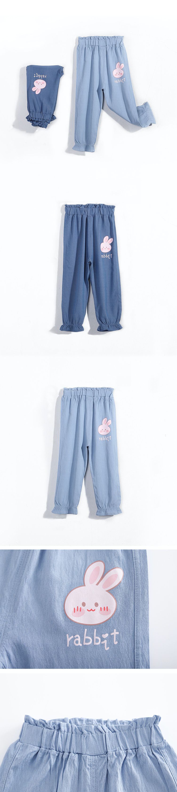 NC - 冰絲牛仔九分防蚊褲/空調褲-粉紅兔兔-淺藍色