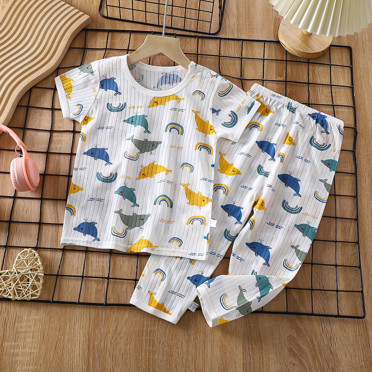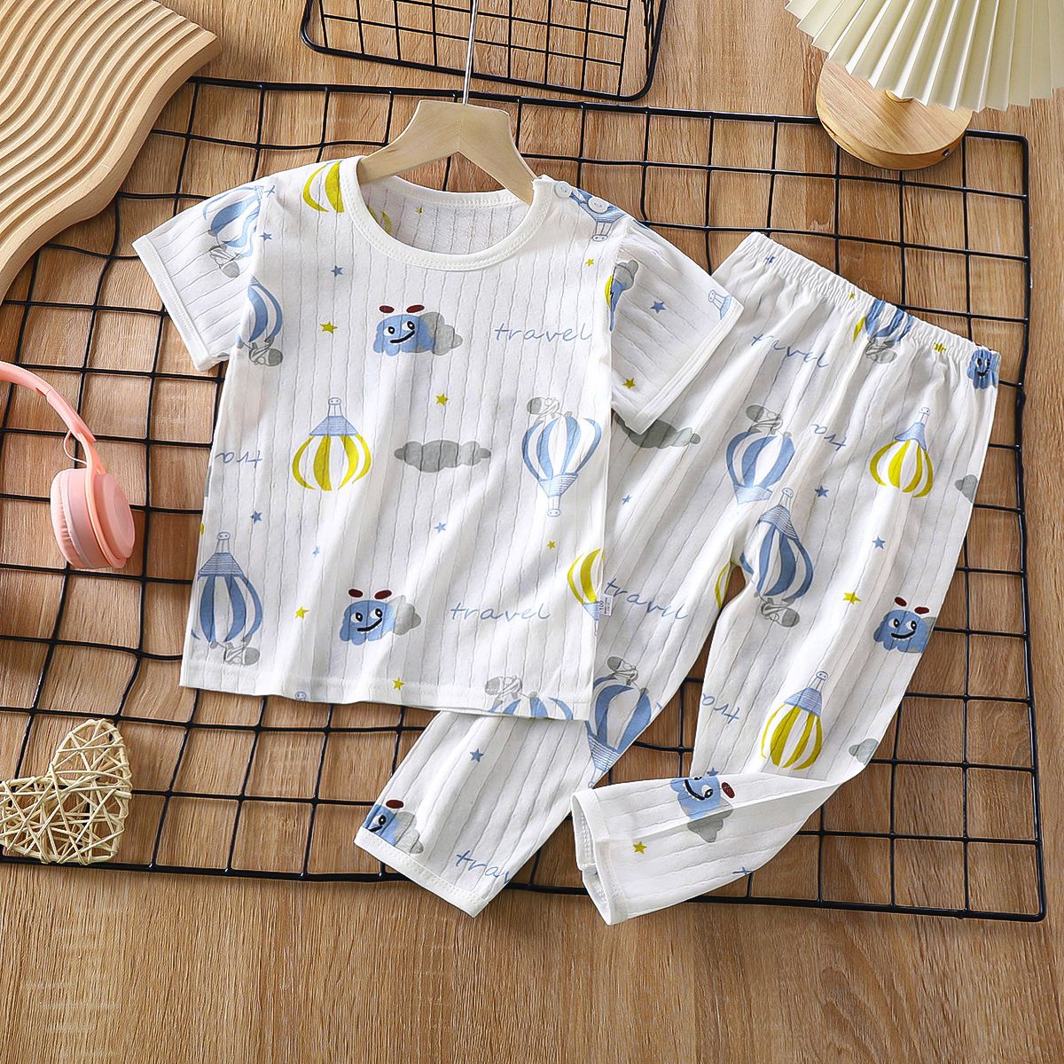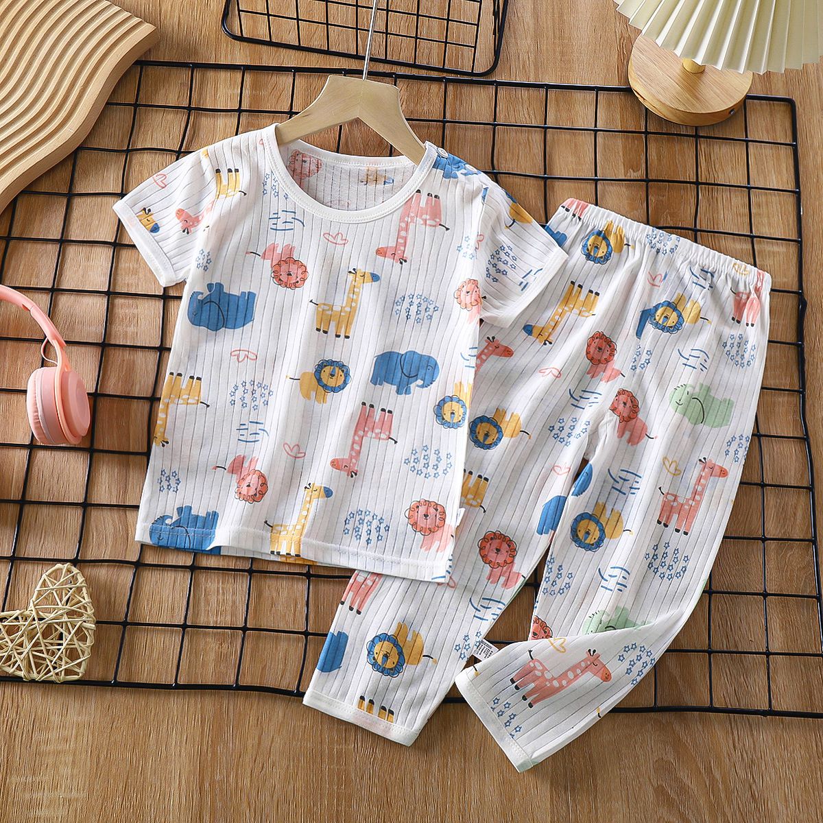 純棉網眼透氣短袖家居服套裝-彩色動物-白色