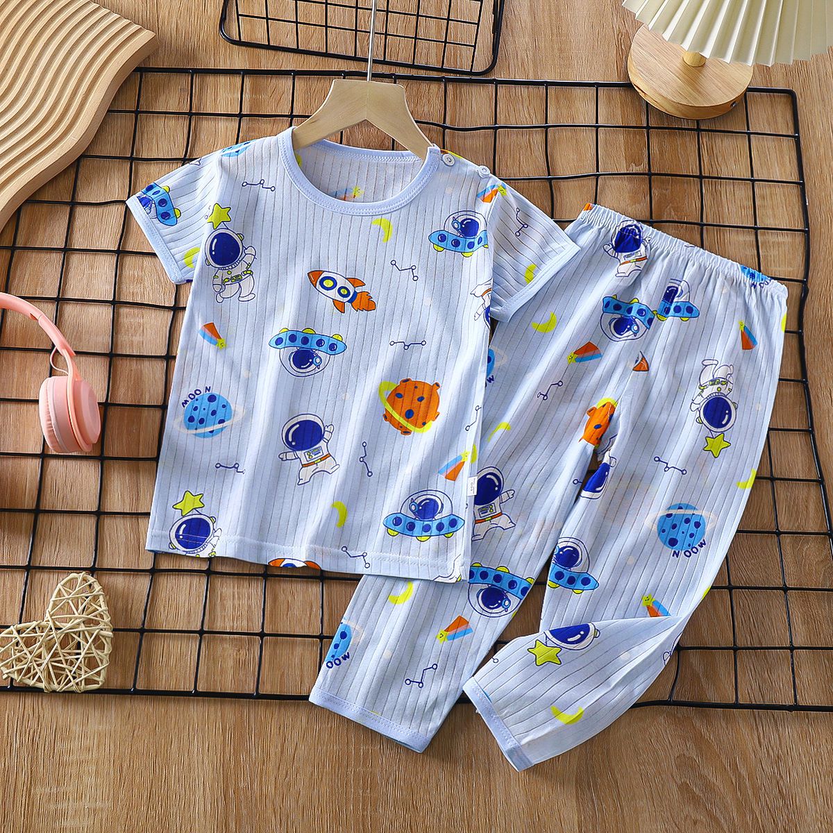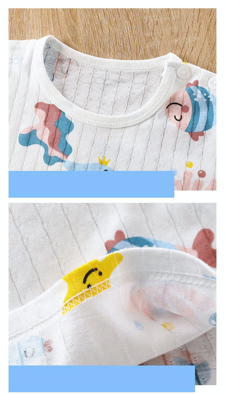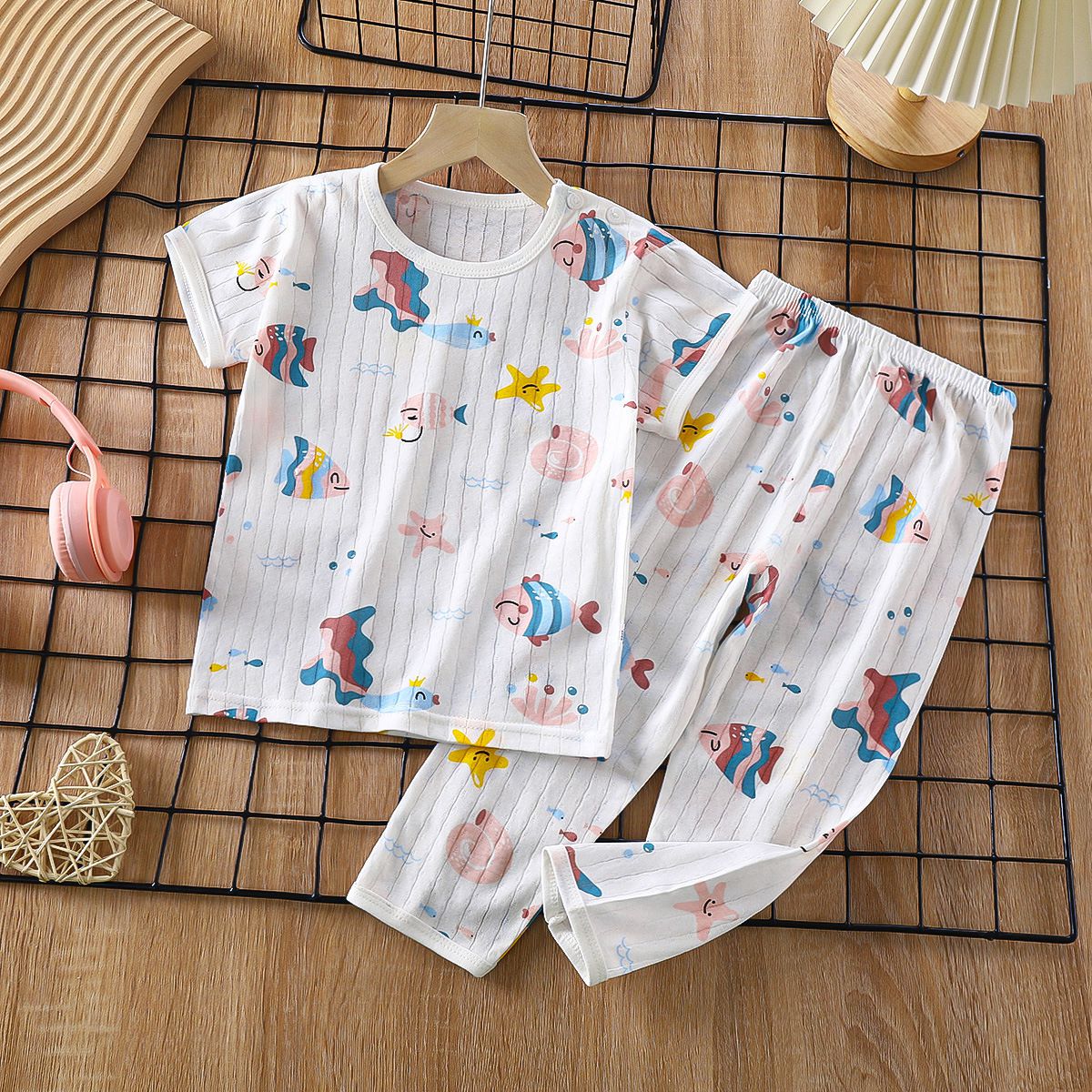 純棉網眼透氣短袖家居服套裝-彩色動物-白色