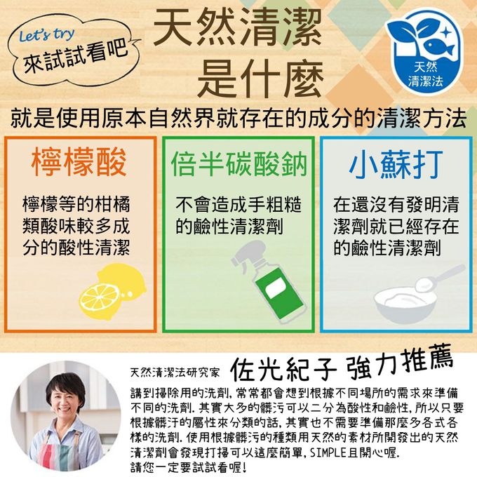 • 使用方式:●可將海綿打濕沾附粉末擦拭。●清潔液(噴霧)製作:比例為水200毫升:粉末5克(一茶匙)。●製作成清潔紙巾使用:將紙巾沾滿清潔液,貼於髒污處。