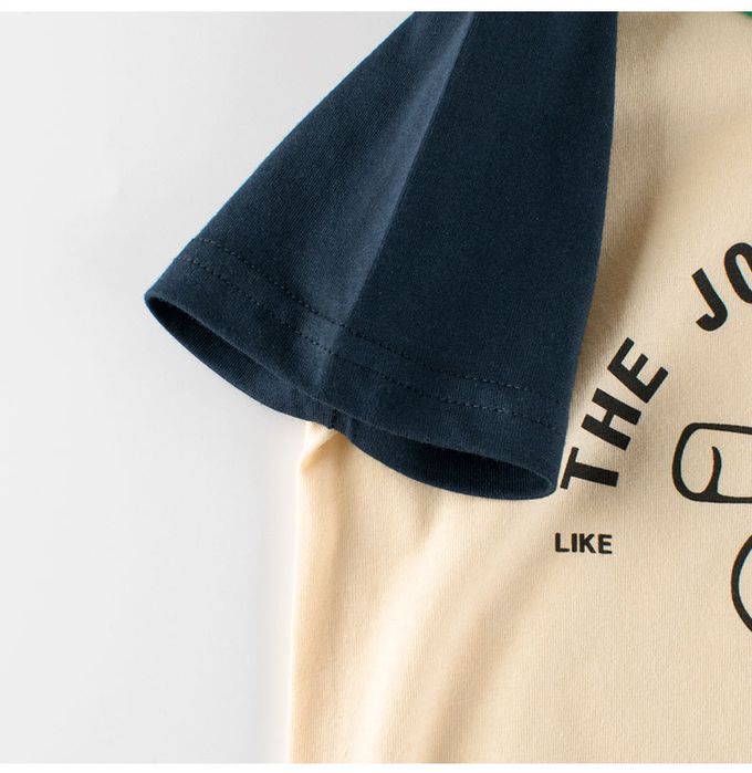 純棉短袖上衣-棒球狗狗-米杏+深藍