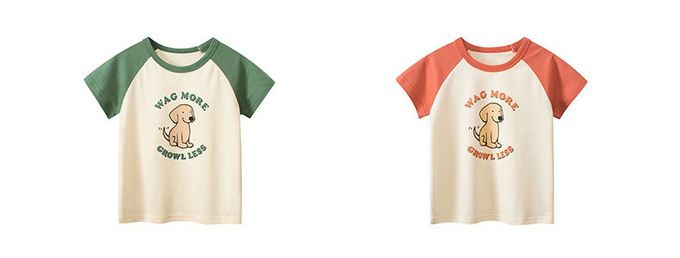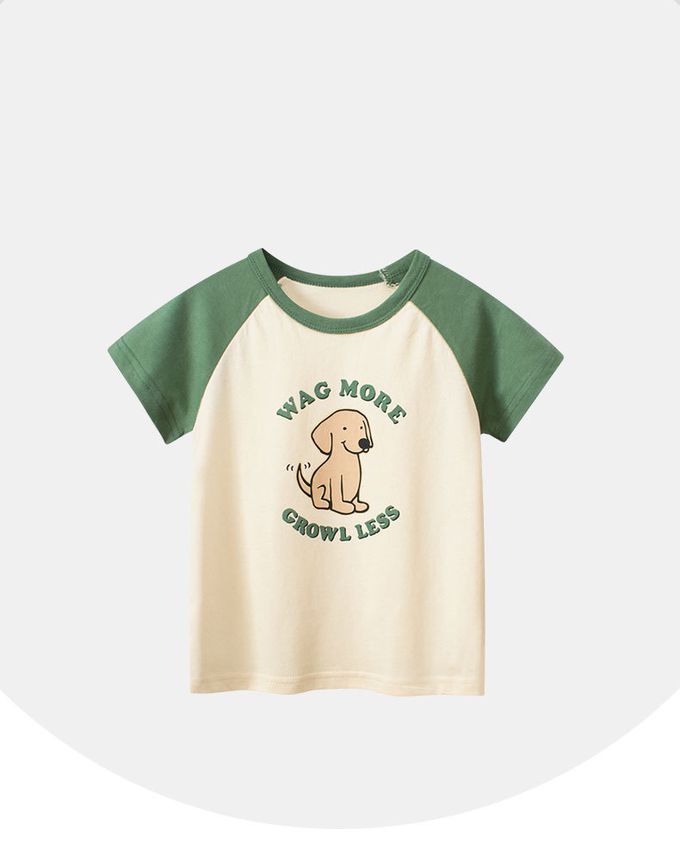 純棉短袖上衣-狗狗搖尾巴-杏+橘