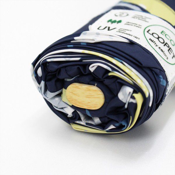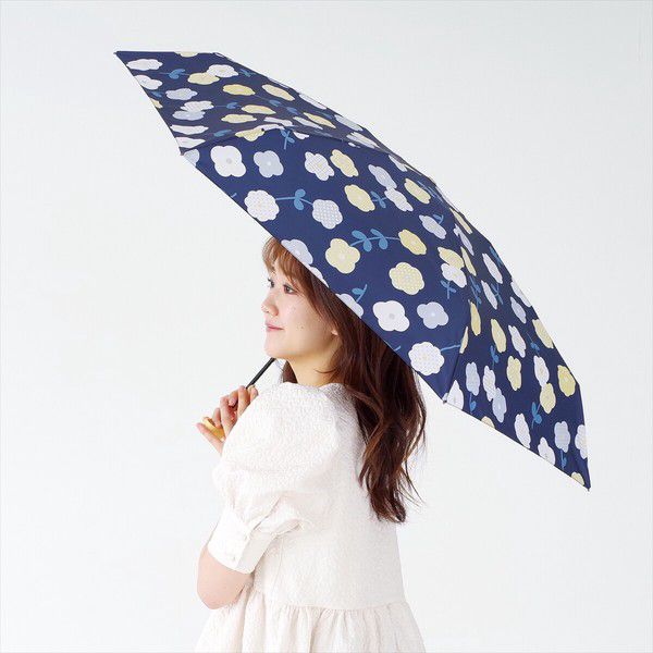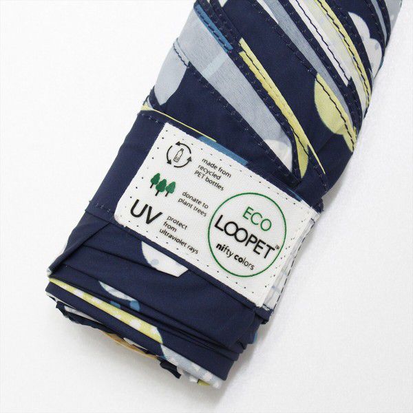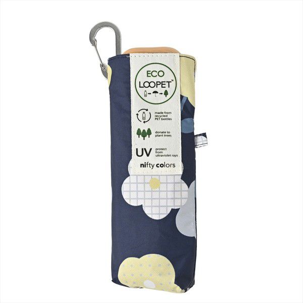 日本 nifty colors - ECO 抗UV 晴雨兩用輕量折疊傘-附掛勾-深藍花 (直徑98cm/144g)